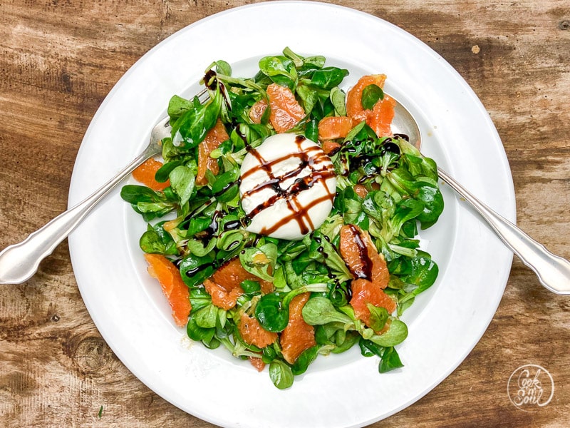 Mozzarella Burrata mit Zitrus und Feldsalat