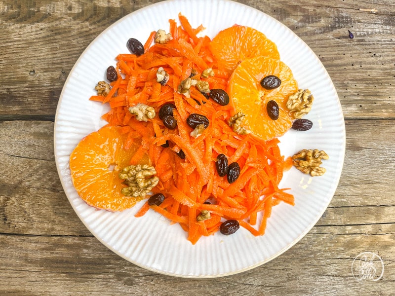 Karottensalat mit Orangen, Rosinen und Walnuss