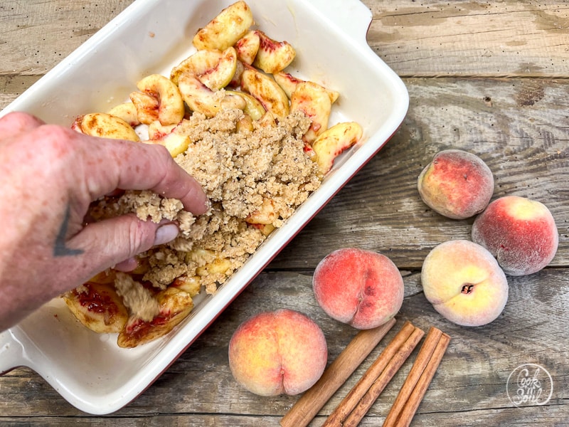 Pfirsichkuchen: easy Pfirsich Crumble Rezept