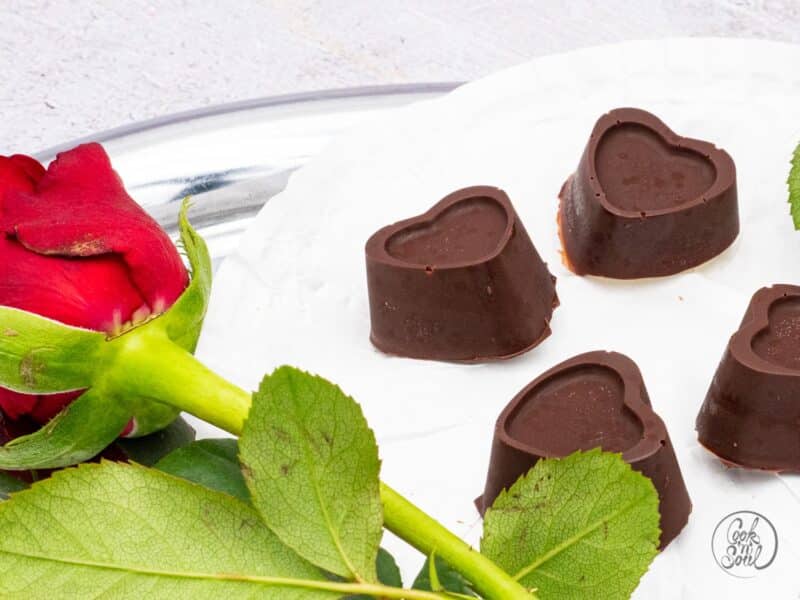 - Die Füllung noch einmal trocknen, erneut die Schokolade schmelzen und dann die Pralinen verschließen. Die Valentinstag Pralinen trocknen lassen und anschließend als Geschenk verpacken.