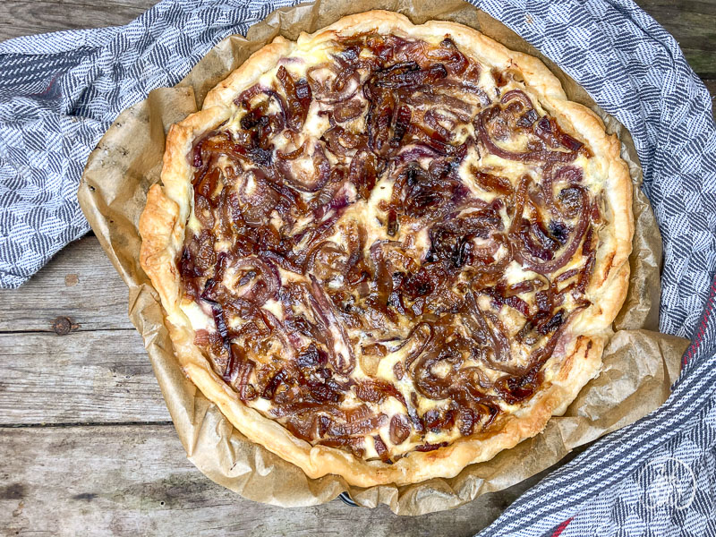 - Du kannst den fertigen Zwiebelkuchen heiß oder leicht abgekühlt genießen.