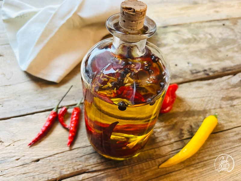 Das Chiliöl ist ideal für alle die ihr Essen gerne scharf mögen. Das Öl kann man ideal zum Kochen verwenden, beispielsweise zu leckeren Grillrezepten oder für gegrilltes Gemüse. Damit das Öl lange haltbar ist, wird es kurz erhitzt. Ein besonders Aroma erhält das Öl durch die Zugabe von frischen Rosmarin, Knoblauch, Pfeffer und (optional) anderen Gewürzen.