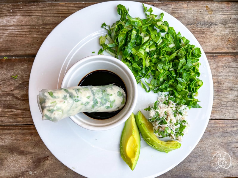 Hier ist ein herrlich einfaches und schnell zubereitetes Frühjahrsdiät Rezept. Geräucherte Forellenfilets, frische Kräuter, etwas saure Sahne und das alles in hauchdünnes Reispapier gepackt. So einfach kann Abnehmen sein 😉