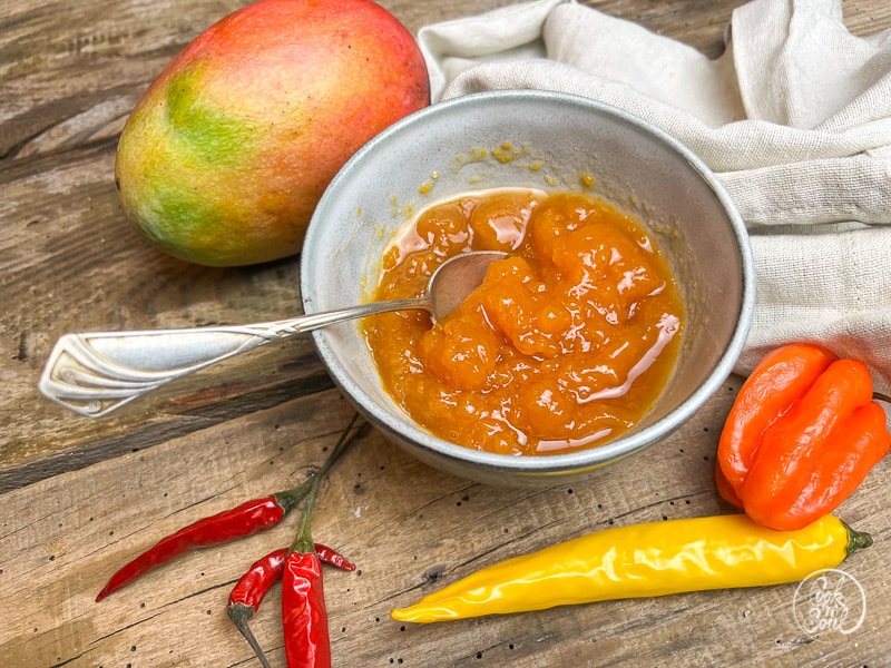 Mango Chili Sauce, schnelle Sauce zu gegrilltem Fleisch & Gemüse