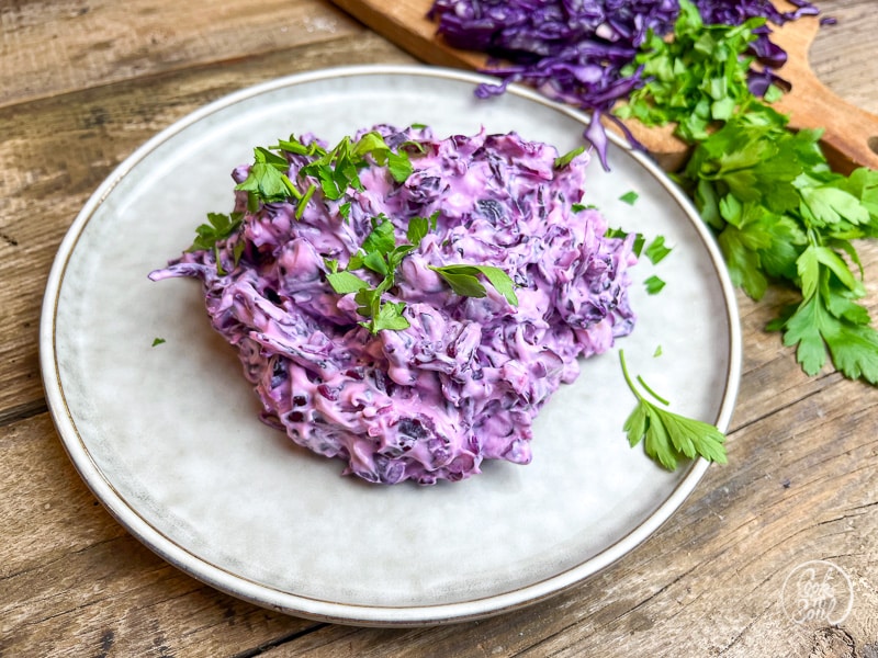 - Rotkohl ca. 40 Minuten durchziehen lassen. Dafür optional in den Kühlschrank stellen. Leicht gekühlt als Salat oder mit Zimmertemperatur als Beilage genießen.