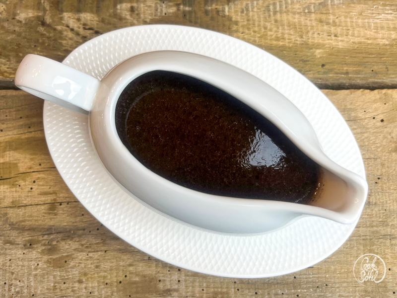 - Solange rühren, bis sich die Mehlschwitze vollständig und klümpchenfrei aufgelöst hat. Dann die restliche Brühe dazugeben und noch mal aufkochen lassen. Mit Salz und Pfeffer abschmecken und servieren.Warum Mehlschwitze? Durch die Mehlschwitze bindet die Soße beim Aufkochen ab und wird schön sämig.