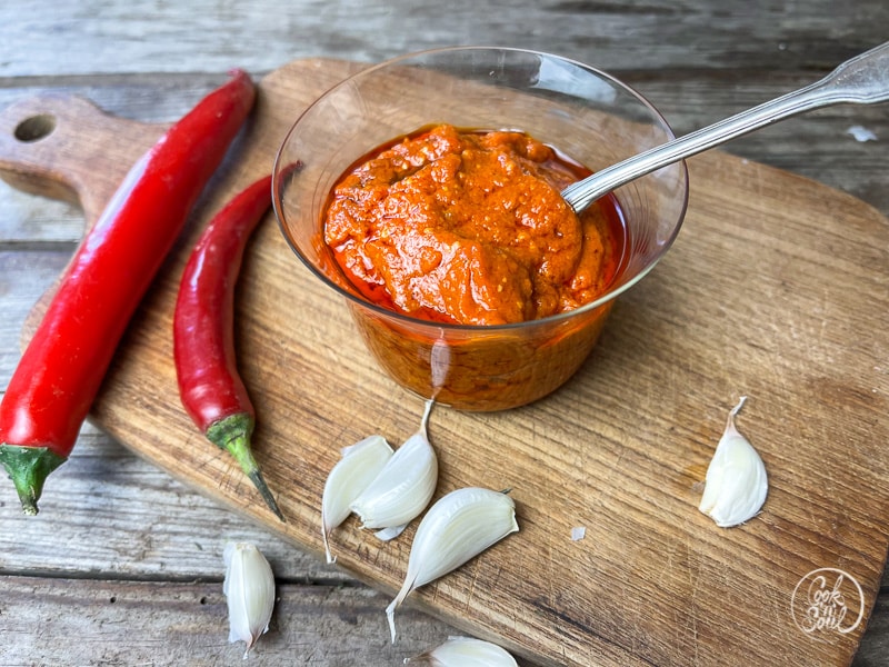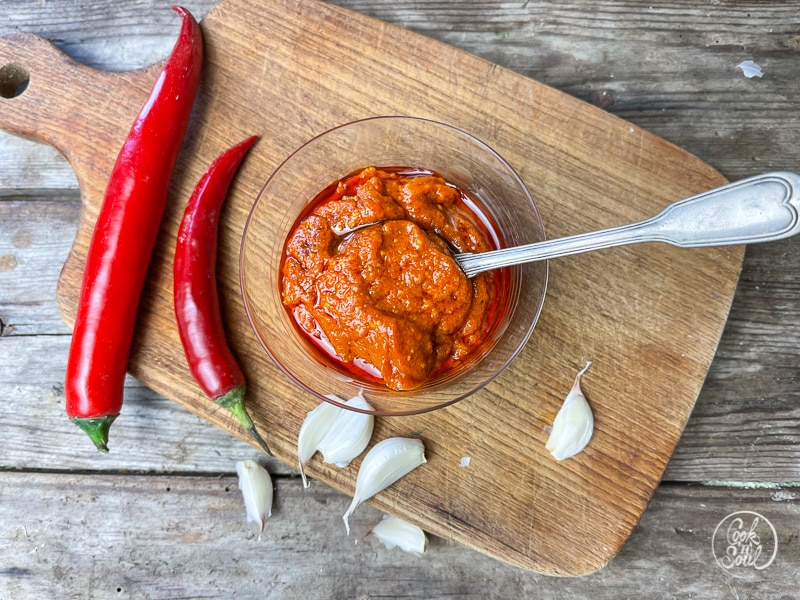 Je nach verwendeter Peperoni fällt die Paste mal schärfer, mal milder aus.
