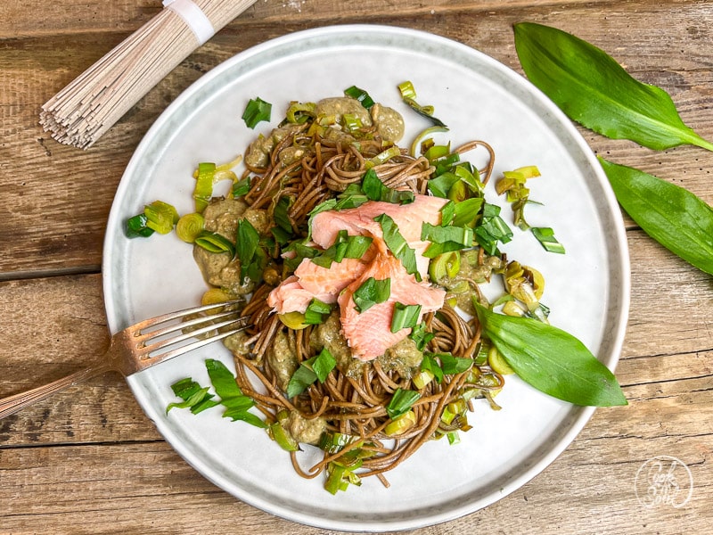 Buchweizen Pasta mit Bärlauchpesto und Saibling