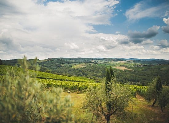 Weinberge soweit das Auge blicken kann. Rund 16 Hektar gehören zur bewirtschafteten Fläche der Fattoria Rignana.