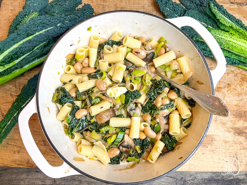 Keyword Eintopf, Laktosefrei, One Pot, Pasta, Schwarzkohl, Vegan, Vegetarisch